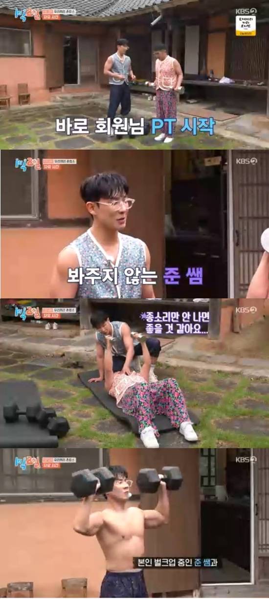 '헬스맨' 이준, 상의탈의 하고 무한 인터벌 "벌크업 집중" (1박 2일)[종합]