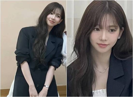 공개된 사진 속 긴 웨이브 머리를 한 카리나는 흰 블라우스에 검정 재킷을 착용, 센스 있는 액세서리로 포인트를 준 단정한 하객 패션을 소화한 모습이다.