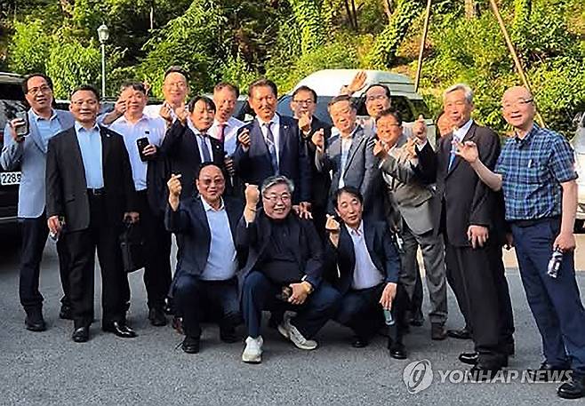 더불어민주당 정청래 의원은 결혼식 후 이 대통령의 소년공 시절 동료들을 만난 모습을 페이스북에 공개했다. 2025.6.15