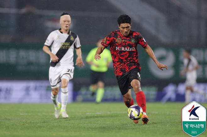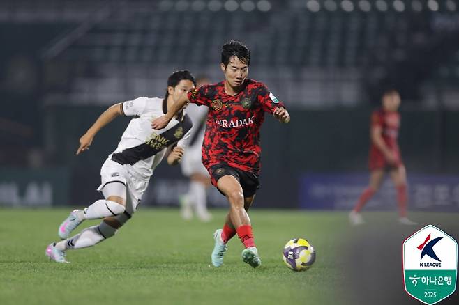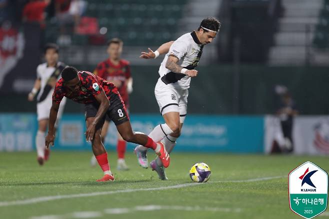 김포가 시작부터 밀어붙였다. 오른쪽에서 올라온 크로스를 최재훈이 뛰어들며 감각적으로 돌려놓았다. 골키퍼가 막아냈다. 6분 경남이 반격했다. 왼쪽에서 김선호가 박스 안까지 침투하며 오른발 슈팅을 날렸다. 골키퍼 정면으로 향했다.