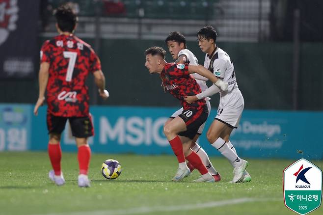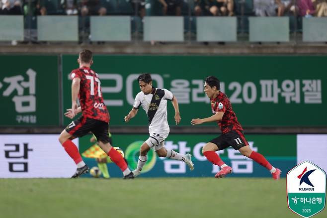 7분 김포가 골망을 열었다. 천지현의 스루패스가 최재훈에게 연결됐다. 단독 찬스를 맞은 최재훈의 오른발 슈팅은 최필수 골키퍼의 선방에 걸렸다. 리바운드 된 볼을 루이스가 뛰어들며 밀어넣었다. 하지만 이번에도 오프사이드 깃발이 올라갔다. VAR 결과도 마찬가지였다.