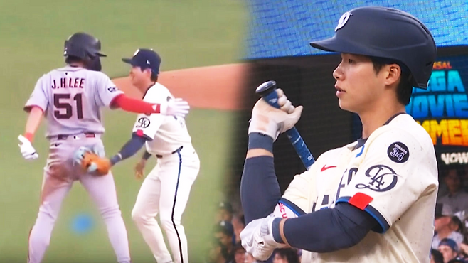 김혜성이 결장했던 전날과 달리 오늘은 두 사람 모두 선발 라인업에 이름을 올리자 메이저리그 중계진도 남다른 관심을 보였습니다.