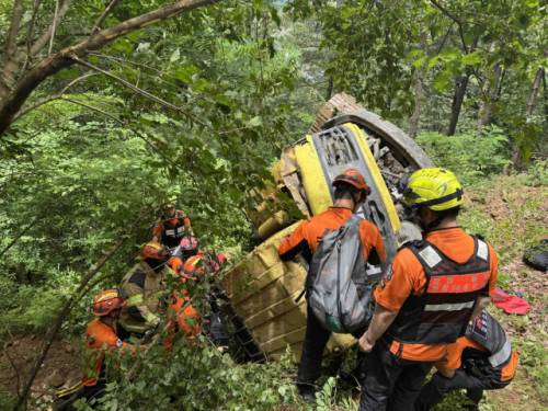 횡성 강림면 작업 중이던 포크레인 30여m 아래 계곡으로 추락해