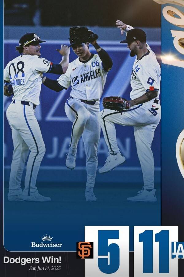 2회에만 대거 5점을 뽑아 일찌감치 승기를 잡은 다저스는 3회 김혜성의 적시타, 6회 오타니와 테오스카 에르난데스의 홈런, 8회 미겔 로하스의 솔로포까지 더해 샌프란시스코를 11-5로 제압했다.