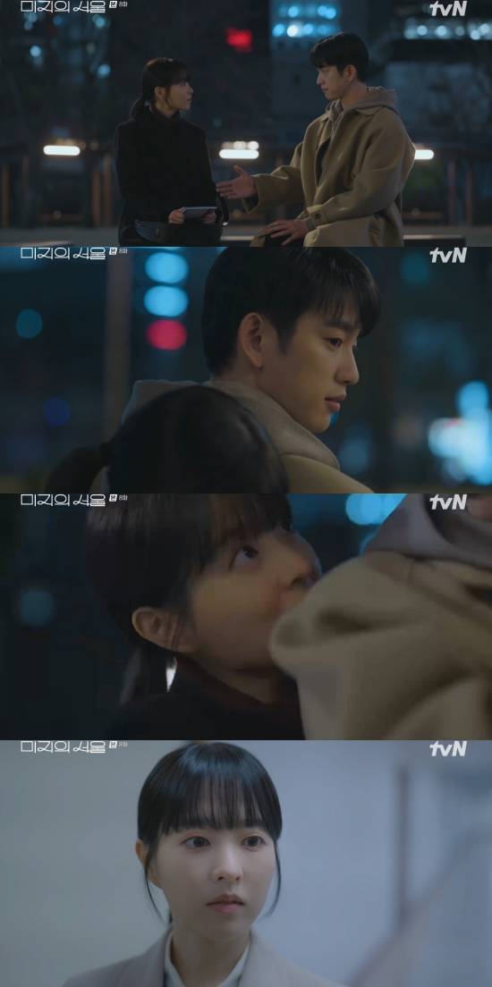 15일 방송된 tvN 토일드라마 '미지의 서울' 8회에서는 유미지(박보영 분)와 이호수(박진영)가 연애를 시작한 모습이 그려졌다.
