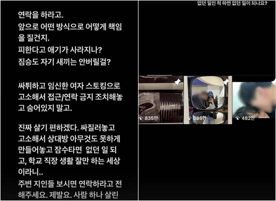 이어 그는 "임신한 여자 스토킹으로 고소해서 접근/연락 금지 조치해 놓고 숨어있지 말고. 진짜 살기 편하겠다"라며 "고소해서 상대방 아무것도 못하게 만들어 놓고 잠수 타면 없던 일 되고 학교, 직장 생활 잘만 하는 세상이라니"라며 남자친구 A씨를 향한 분노를 쏟아냈다.