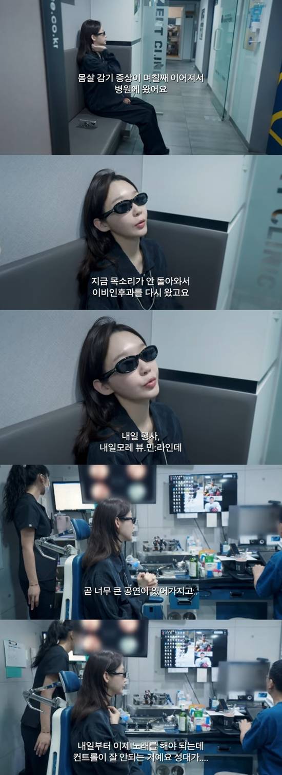 의사를 만난 강민경은 "너무 큰 공연이 있다. 내일부터 이제 노래를 해야 되는데 성대가 컨트롤이 잘 안된다. 그래서 '약을 더 세게 한번 먹어야 되나?'(생각했다)"라고 말했다.