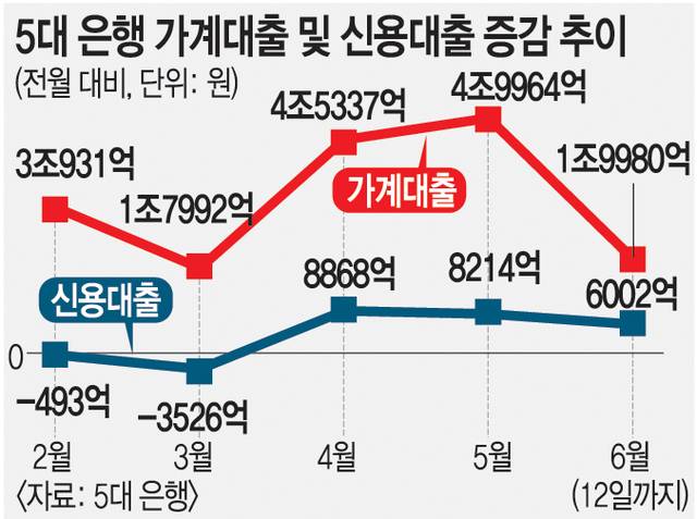 지금 추세라면 6월 가계대출 증가 폭이 5조원을 뛰어넘을 가능성이 높다.