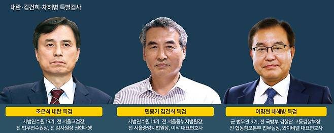 윤석열 정권을 정면으로 겨누고 있는 ‘3대 특별검사팀(내란·김건희·채해병 특검)’은 각자 맡은 사건과 관련한 수많은 의혹·혐의 중 기존 수사기관 수사에서 미진했던 부분이나 아직 수사가 진행되지 않은 부분에 수사력을 집중할 것으로 보인다. 각 특검팀을 이끌 조은석 특검(내란), 민중기 특검(김건희), 이명현 특검(채해병)은 모두 공직 재직 시절 정권과 대립각을 세웠던 인물들이다. 큰 조직을 이끌어본 경험이 있고, 대형 사건을 다뤄본 적이 있다는 점도 특검들의 공통점으로 꼽힌다.