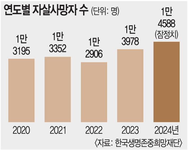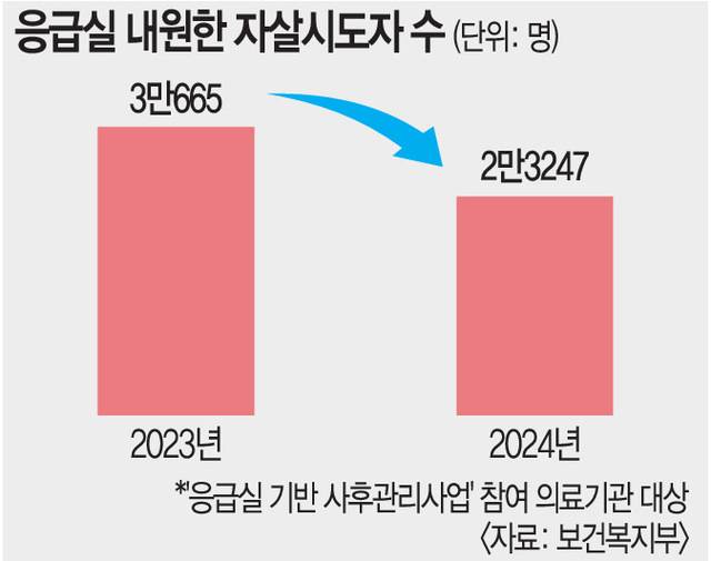 자살사망자가 11년 만에 최고치를 기록한 지난해 응급실에 내원한 자살시도자는 오히려 전년 대비 24% 감소한 것으로 나타났다. 의료 현장에서는 지난해 2월 불거진 의·정 갈등 사태와 의료진 이탈이 장기화한 여파로 보고 있다.
