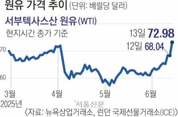 국제 유가가 더 오른다면 원유를 전량 해외에서 들여오는 한국 경제에는 상당한 부담이다. 한국석유공사에 따르면 중동산 원유 수입 비중은 2021년 59.8%에서 2023년 71.9%까지 올랐다. 유가가 급등하면 원유를 중간재로 사용하는 상품 가격 상승이 불가피하다. 삼성경제연구소에 따르면 국제 유가가 10% 상승하면 국내 소비자물가는 0.92% 포인트 상승 압력을 받으며 수출 기업에는 82억 달러의 적자 요인이 생긴다. 국제 유가 급등 여파가 시차를 두고 국내 물가에 반영되기 시작해 다음주부터는 국내 유가도 반등할 전망이다.