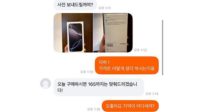인천에 사는 20대 A 씨는 당근마켓에서 알게 된 B 씨로부터 아이폰16 프로맥스를 구매하기로 하고 문고리 거래를 하러 약속 장소에 갔습니다.