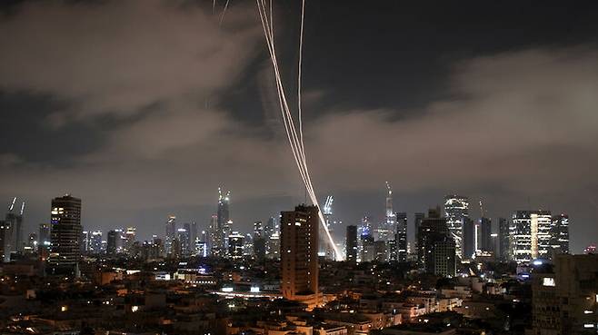 ▲ 이스라엘 아이언돔이 이란 미사일을 요격하는 모습