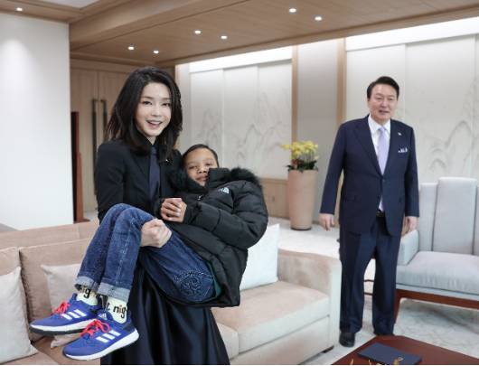 김건희 여사가 우리나라에서 심장 수술을 한 옥 로타 군을 대통령실로 초청해 안아 올린 사진을 두고 신인규 국민의힘 전 상근 부대변인은 이날 KBC라디오 '백운기의 시사1번지'에서 "미담 제조하는 의도에서 지금 이런 사진들을 찍고 자꾸 릴리스(배포)를 시키는 건데 이것이 과연 대한민국 정치에 도움 되는가, 아니면 대한민국 복지, 외교에 도움이 되는가. 저는 다 아니라고 본다"고 주장했다. 그러면서 "이런 것들을 어떤 목적과 의도를 갖고 했더라도 결과가 없기 때문에 굉장히 공허하다고 생각한다"고 덧붙였다. 윤 대통령 부부는 전날 오후 수술을 마치고 귀국을 준비하는 로타 군과 만나 축구공을 선물했다. 사진=대통령실 제공