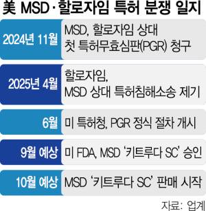 MSD는 올해 키트루다 SC 출시를 앞두고 할로자임과의 특허 분쟁 소지를 없애기 위해 지난해 11월부터 총 13건의 PGR을 제기한 상태다.