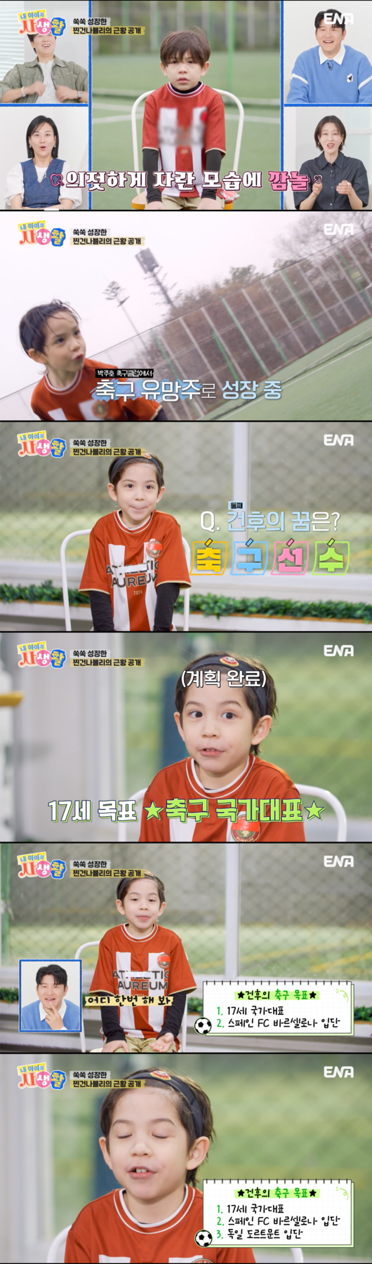 15일 오후 방송된 ENA ‘내 아이의 사생활’(이하 ‘내생활’)에서는 축구 선수 출신 해설자 박주호의 세 자녀 나은, 건후, 진우의 폭풍 성장한 근황이 공개됐다.