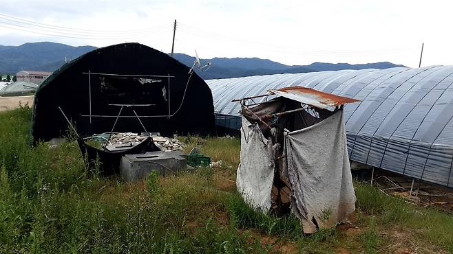 농장 기숙사들은 채소 시설 농장 귀퉁이나 도로 옆 어딘가에 있었다. 잿빛 혹은 새까만 차광막으로 꽁꽁 싸맨 비닐하우스가 대개 기숙사였다. 출입문이나 그 위에 작은 환풍구 말고는 햇빛이나 바람이 안 통하겠다 싶었다. 어떤 기숙사는 문이 열려 있었다. 비닐하우스 안쪽으로 흙바닥 위에 샌드위치 패널로 지은 조립식 주택이 슬쩍 보였다.