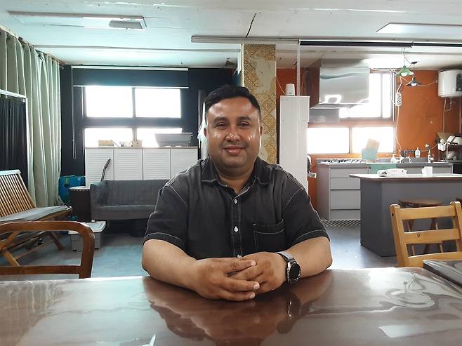 | ▲ '섹 알 마문' 감독과 '아시아미디어컬처팩토리' 지난 5월 12일 '아시아미디어컬처팩토리' 공용 공간에서 섹 알 마문 감독과 만났다. 이 곳에서 이주노동자들이 문화예술 창작을 비롯해 여러 활동을 하고 있다. |