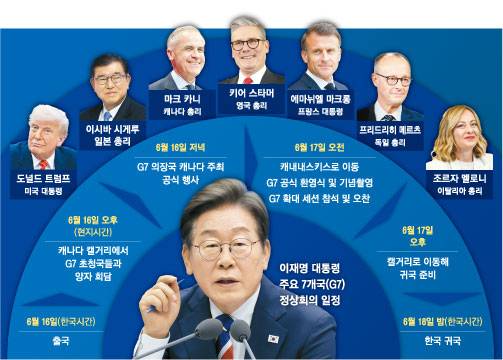 취임한 지 불과 2주 만에 열리는 G7 정상회의를 활용해 계엄·탄핵으로 멈췄던 정상외교를 재가동하고, 미·일과의 협력 강화 의지를 대외적으로 확실히 밝히는 기회로 삼겠다는 포석이다. 위성락 국가안보실장은 15일 브리핑을 통해 “G7 정상회의를 계기로 주요국 정상과 협의해 외교·경제·통상 현안을 타개할 방안을 모색할 수 있다”고 밝혔다.