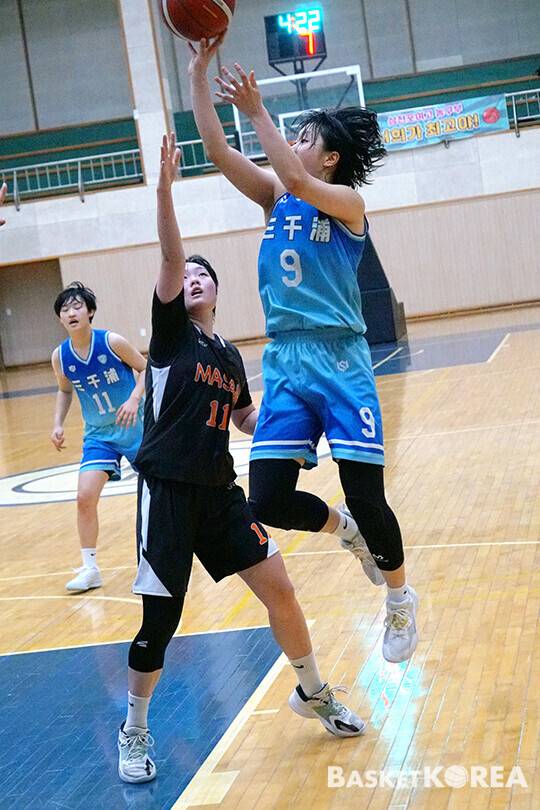 삼천포여고는 15일 부산 동아고 체육관에서 계속된 2025 한국중고농구 주말리그 경상권역별 예선 여고부 D조 경기서 마산여고를 50-40으로 꺾었다.