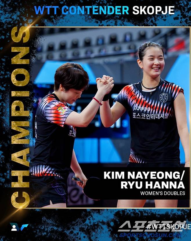 [스포츠조선 전영지 기자]김나영-유한나조(이상 포스코인터내셔널)가 올 시즌 두 번째 월드테이블테니스(WTT) 우승컵을 들어올렸다.