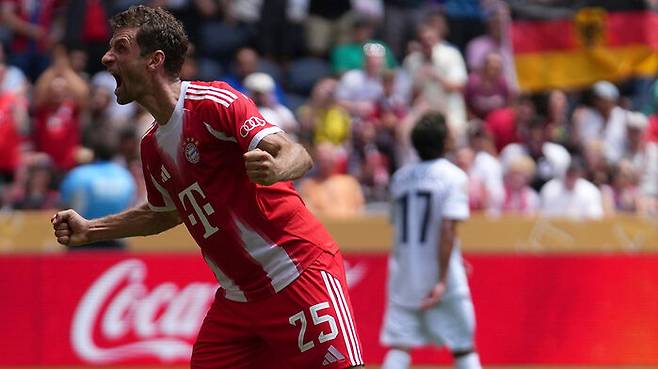 후반 16분 교체로 투입된 자말 무시알라가 해트트릭을 달성한 가운데 지난 시즌을 마지막으로 뮌헨과의 25년 동행을 마무리한 뒤 이번 대회 출전을 위해 '1개월 단기 계약'한 토마스 뮐러가 멀티골로 '라스트 댄스'의 시작을 화려하게 알렸습니다.