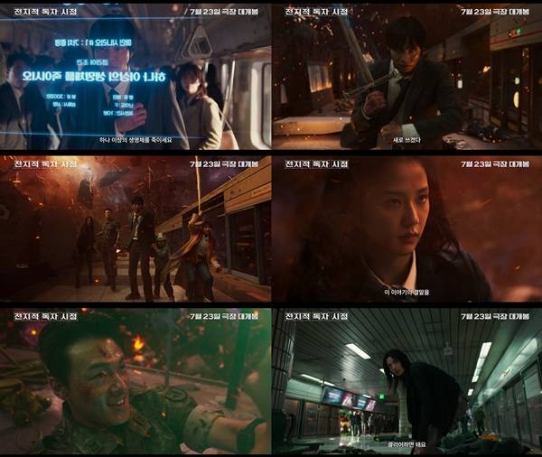함께 공개된 메인 예고편은 "내가 좋아했던 나의 전부였던 이야기가 현실이 되었다" 는 '김독자'의 대사로 시작하며 몰입감을 최고조로 끌어올린다. 퇴근길 지하철이 갑작스레 멈추고 소설 속 세계가 현실이 되며 도깨비 '비형'이 시나리오를 부여한다. 혼란에 빠진 인간들의 모습이 스펙터클하게 전개되며 흥미를 자극한다. 특히 예고편 가득 펼쳐지는 본 적 없던 방대한 세계관의 생생한 비주얼과 화려한 액션 장면들이 순식간에 분위기를 고조시킨다. '명주실', '방패', '칼' 등 캐릭터별 시그니처 액션이 휘몰아치며 판타지 액션의 정석을 완벽히 보여줄 것으로 기대를 끌어 올린다. 또한 예고편의 마지막 장면에서 주인공 혼자만 살아남는 결말이 아닌, 모두가 함께 살아남는 결말을 다시 쓰고자 하는 '김독자'의 굳은 의지는 동료들과 함께하는 장대한 여정에 더욱 궁금증을 더한다. 관객들의 눈과 귀를 압도할 시네마틱 경험을 예고한 '전지적 독자 시점'은 올여름을 기다리는 단 하나의 이유로 떠오르며 전 세계 영화 팬들의 심장 박동수를 증폭시키고 있다.