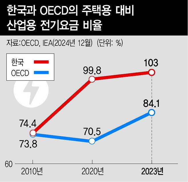 고윤주 전무는 “글로벌 경영 환경이 매우 어려운 상황에서 석유화학·철강 기업들의 매출액 대비 전기요금 비중이 7.5%에서 10.7%로 높아졌다”고 어려움을 털어놨다. 그는 “기업들이 바라는 것은 요금의 예측 가능성을 높여달라는 것”이라며 “요금 변경에 대한 중장기 로드맵을 먼저 수립하면 기업이 투자계획을 세우고 결정을 내리기 용이하다”고 말했다. 그는 요금 인상 때 이해관계자에게 의견을 듣는 프로세스를 마련해 정책의 투명성을 높이고, 재생에너지 구매에 대한 법인세 공제, 보조금 지급, 전기요금 할인 같은 인센티브를 제공할 것도 요청했다. 한편 우리나라 전기요금은 2023년 기준으로 경제협력개발기구(OECD) 주요국의 평균과 비교할 때 주택용은 63%, 산업용은 76%로, 여전히 낮은 편이다.