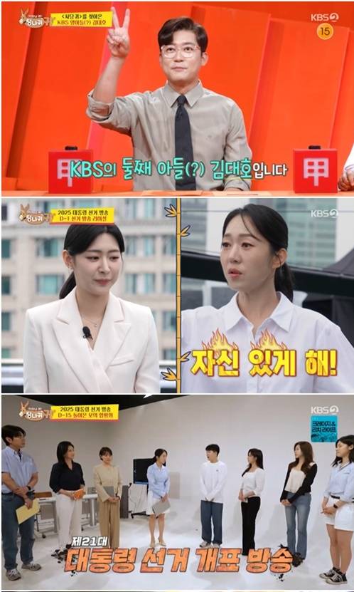 엄지인은 모의 개표 방송을 위해 KBS 아나운서국의 베테랑인 박지현, 김진희 아나운서까지 초빙해 후배 교육에 나섰다.