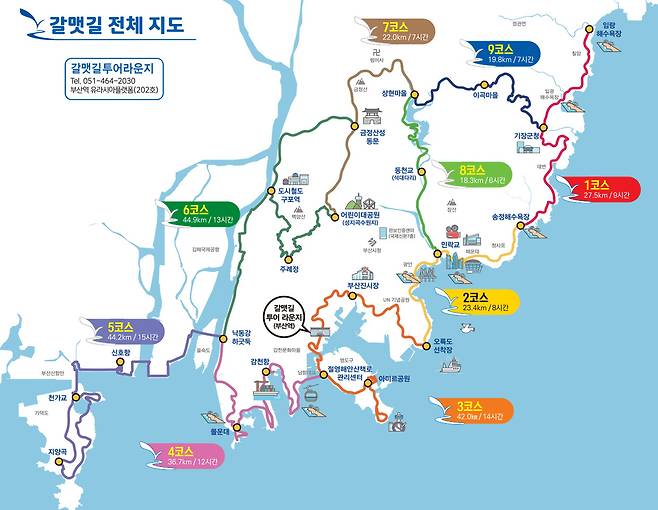 부산시는 시민과 관광객 모두 쉽고 편리하고 즐겁게 걸을 수 있는 길로 거듭나기 위해 갈맷길을 전면 개편하기로 했다. ‘갈맷길 기본계획 수립 및 안내 체계 디자인 개선 용역’을 통해 기존 9개 노선을 재정비하고 신규 노선 발굴, 대중교통 연계 강화, 안내 체계 및 편의시설 디자인 개선을 추진한다.