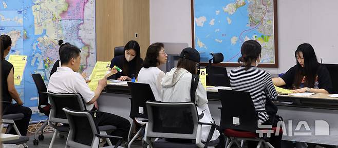 [인천=뉴시스] 전진환 기자 = 2025년도 제2회 초등학교ㆍ중학교ㆍ고등학교 졸업학력 검정고시 원서접수가 시작된 16일 오전 인천 남동구 인천시교육청에서 응시생들이 원서접수를 하고 있다. 2025.06.16. amin2@newsis.com