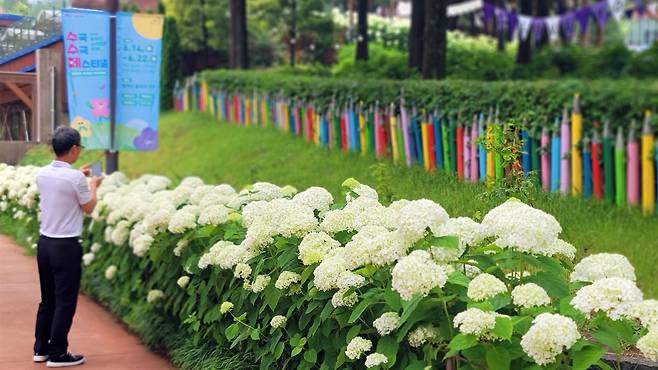 | ▲ ‘2025 월아산 수국정원축제 수국수국페스티벌’이 6월 14일부터 6월 22일까지 진주 월아산 숲속의 진주에서 열린다. |