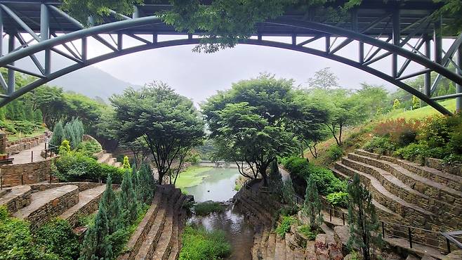 곳곳에 쉬어가라 유혹하는 쉼터들이 우리의 발을 붙잡습니다. 숨을 고르고 주위를 천천히 둘러봅니다. 나뭇가지 사이로 시리릭시리릭 바람 소리가 들립니다.