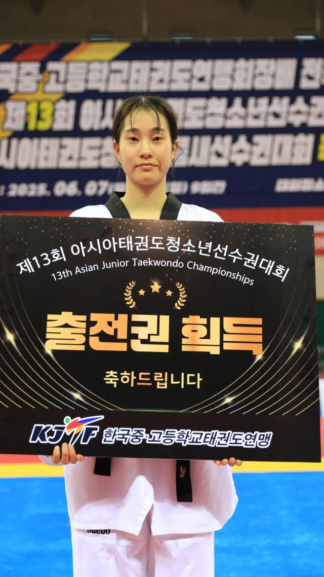 정유정은 지난 11일 경북 문경 국군체육부대 선승관에서 열린 제13회 아시아태권도청소년선수권대회 국가대표 선발대회 여자 -59㎏급에서 우승했다.