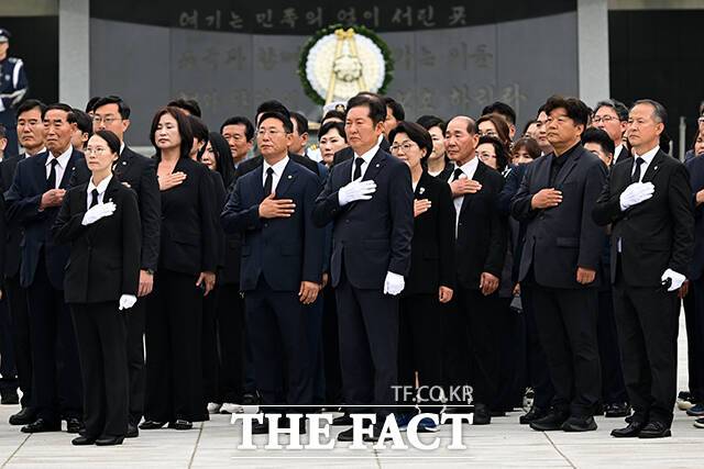 현충원에서 만난 김병기·정청래 '반가운 악수' [TF사진관]
