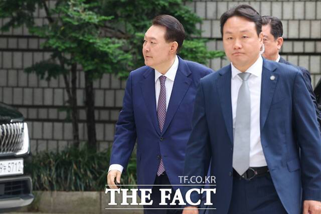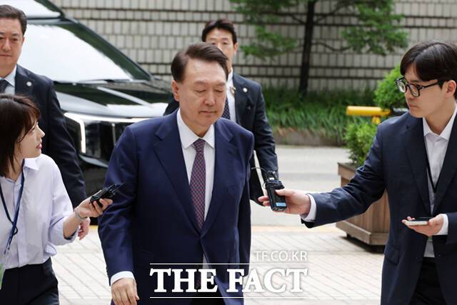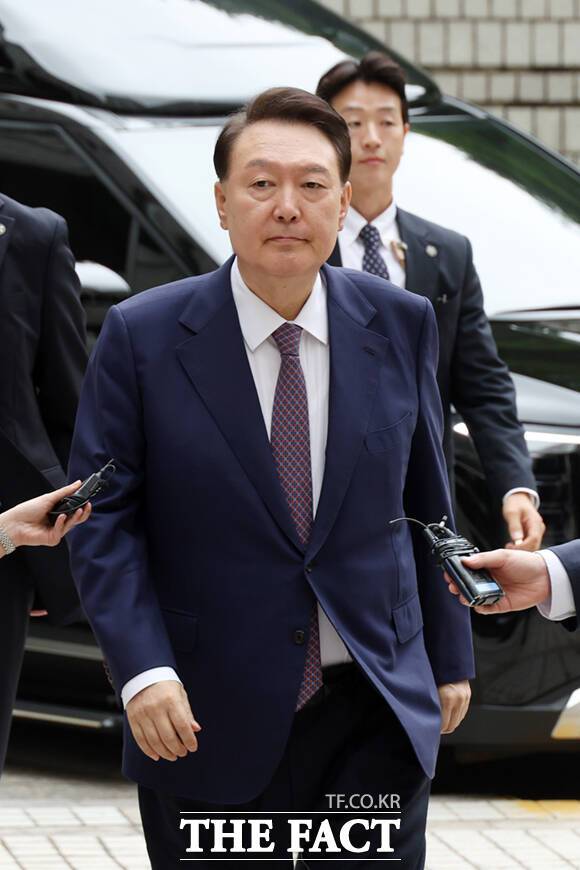 [더팩트ㅣ이새롬 기자] 윤석열 전 대통령이 16일 오전 서울 서초구 서울중앙지방법원에서 내란 우두머리 혐의 사건 7차 공판에 출석하고 있다.