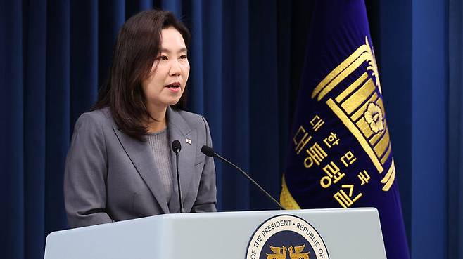 ▲ 강유정 대통령실 대변인이 16일 용산 대통령실에서 국민추천제 등 현안 관련 설명을 하고 있다.
