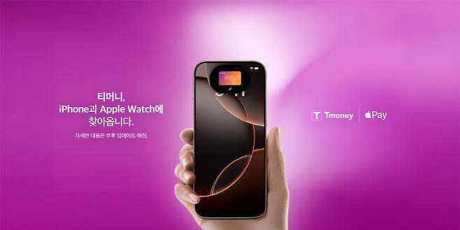 홍보 이미지에는 애플페이를 통해 교통카드를 태그하는 장면이 담겼다. 사실상 ‘애플페이 티머니 연동’ 공식화다. 앞으로 애플페이 이용자는 별도 실물카드 없이 아이폰·애플워치만으로 버스와 지하철을 탈 수 있게 된다.