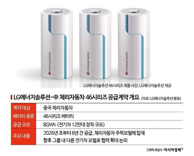 LG엔솔, 中 완성차 시장 뚫었다…체리차에 46시리즈 공급
