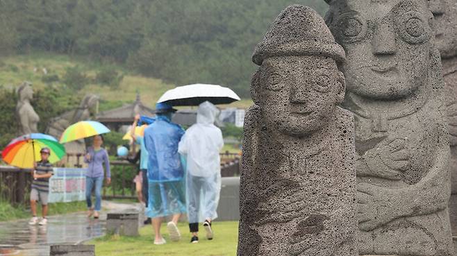 한라산에는 남벽 71㎜, 영실 68.5㎜, 사제비 67㎜, 진달래밭 65.5㎜, 어리목 55㎜ 등의 비가 내렸습니다.