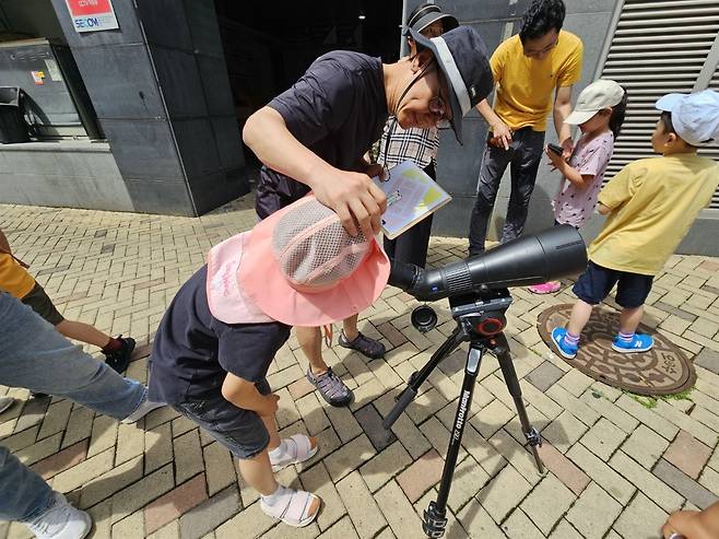 | ▲ 망원경으로 제비를 확인하는 모습 |