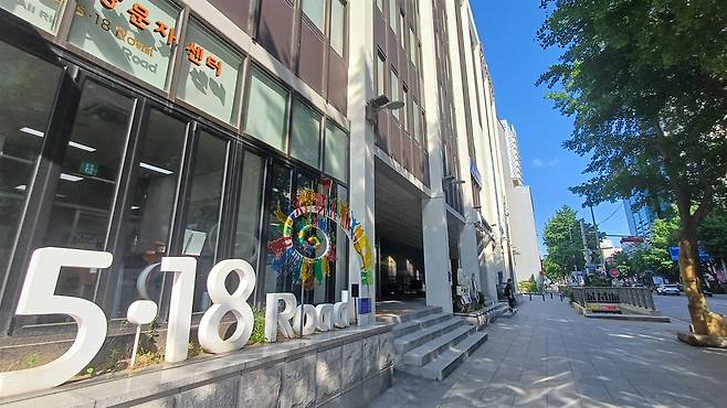 | ▲ 광주 5?18민주화운동기록관 풍경. 건물 앞에 5.18사적임을 알리는 표지석이 세워져 있고, 1층엔 오월길 방문자센터가 들어서 있다. |