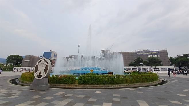 | ▲ 5.18민주화운동의 중심 공간이던 옛 전남도청과 분수대 일대. 도청은 당시 항쟁지도부의 활동공간이자, 시민군의 최후 항전지이기도 하다. 분수대 앞에 5.18사적지 표지석이 세워져 있다. |