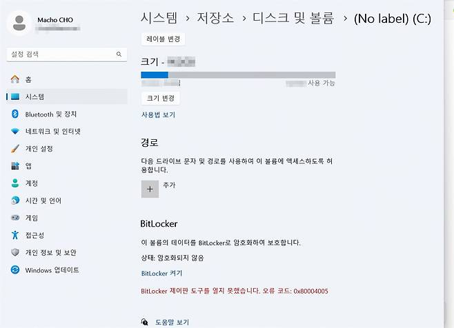 | ▲ 제어판에서 BitLocker를 찾았으나 ‘열지 못한다’는 오류코드가 떴다. |