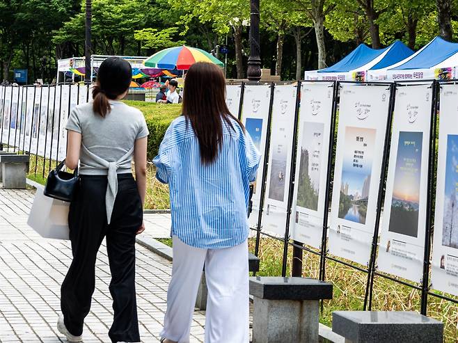 | ▲ 밖으로 나온 미술관 12일부터 14일까지 진행된 밖으로 나온 미술관을 시민들이 관람하는 모습 |