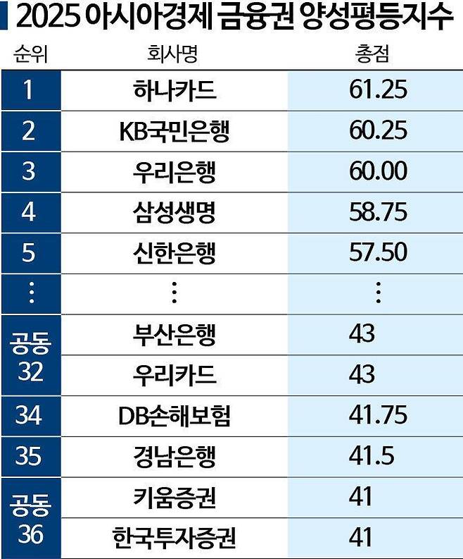 조사는 지주사·공기업을 제외한 국내 매출 상위 100대 상장사(100대기업)와 37개 금융사를 대상으로 진행했다. 그 결과 100대기업 가운데에서는 카카오가 1위에 올랐다. 가족친화제도 활성화와 여성 인재 육성 노력 등이 높은 평가를 받았다. 금융권에서는 하나카드가 전 부문에서 고른 점수를 받아 1위를 차지했다. 반면 대한유화, 키움증권, 한국투자증권은 최하위에 머물렀다.