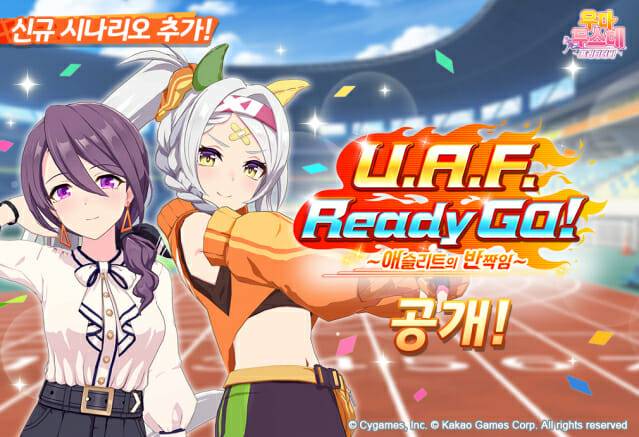 신규 시나리오 ‘U.A.F Ready GO!’는 우마무스메들이 종합 스포츠 대회 ‘U.A.F’에 참가하는 이야기를 중심으로 구성됐다. 이용자는 ‘트레센 학원’이 우승을 목표로 도전하는 과정에서, 기존과는 다른 신체 능력을 활용한 이색 종목을 통해 색다른 육성 경험을 즐길 수 있다.