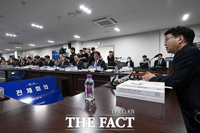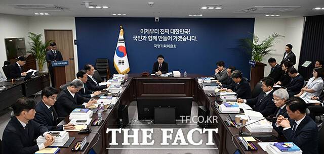 [더팩트ㅣ임영무 기자] 이한주 국정기획위원회 위원장이 16일 오전 서울 종로구 정부서울청사 창성동 별관에서 열린 국정기획위원회 제1차 전체회의에 참석해 모두발언을 하고 있다.