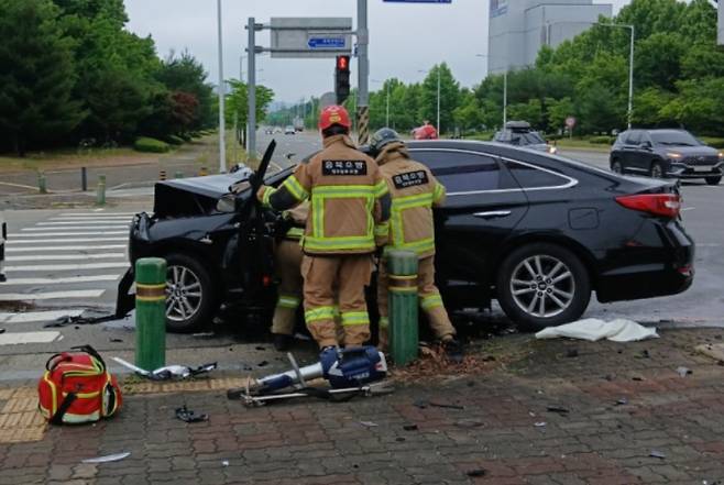 청주 사거리서 SUV·승용차 충돌...2명 부상