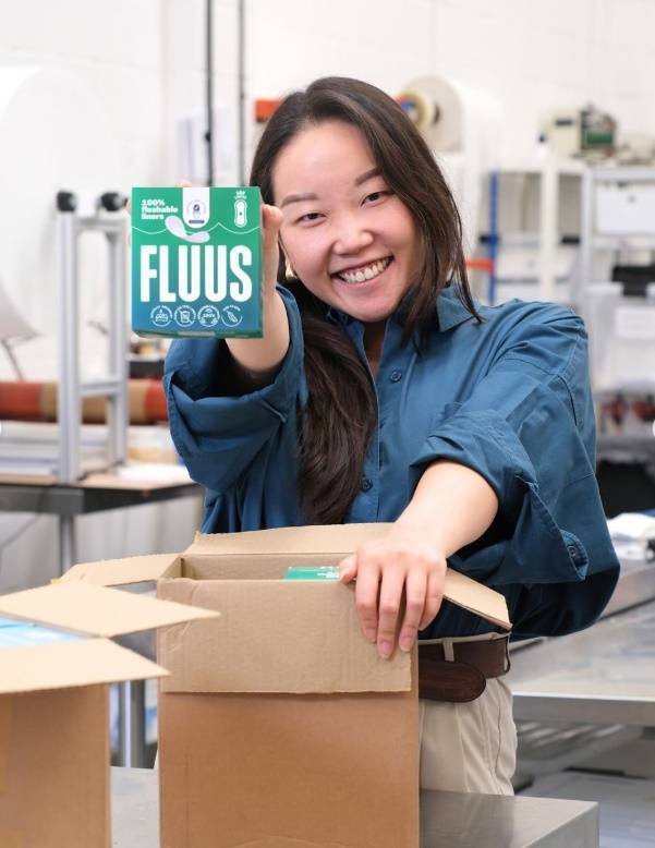 일반적으로 패드형 생리대는 대부분이 플라스틱으로 이루어져서 자연 분해되는데 수백 년이 걸린다. 이 때문에 변기에 버릴 수 없고 쓰레기통에 버려도 폐기물로 남는다. 반면, 영국 스타트업 플루스(Fluss)가 개발한 생리대는 미세 플라스틱을 함유하지 않고 물에 닿으면 휴지처럼 자연 분해되기 때문에 변기에 버릴 수 있으면서 매립 폐기물을 남기지 않는 게 특징이다.